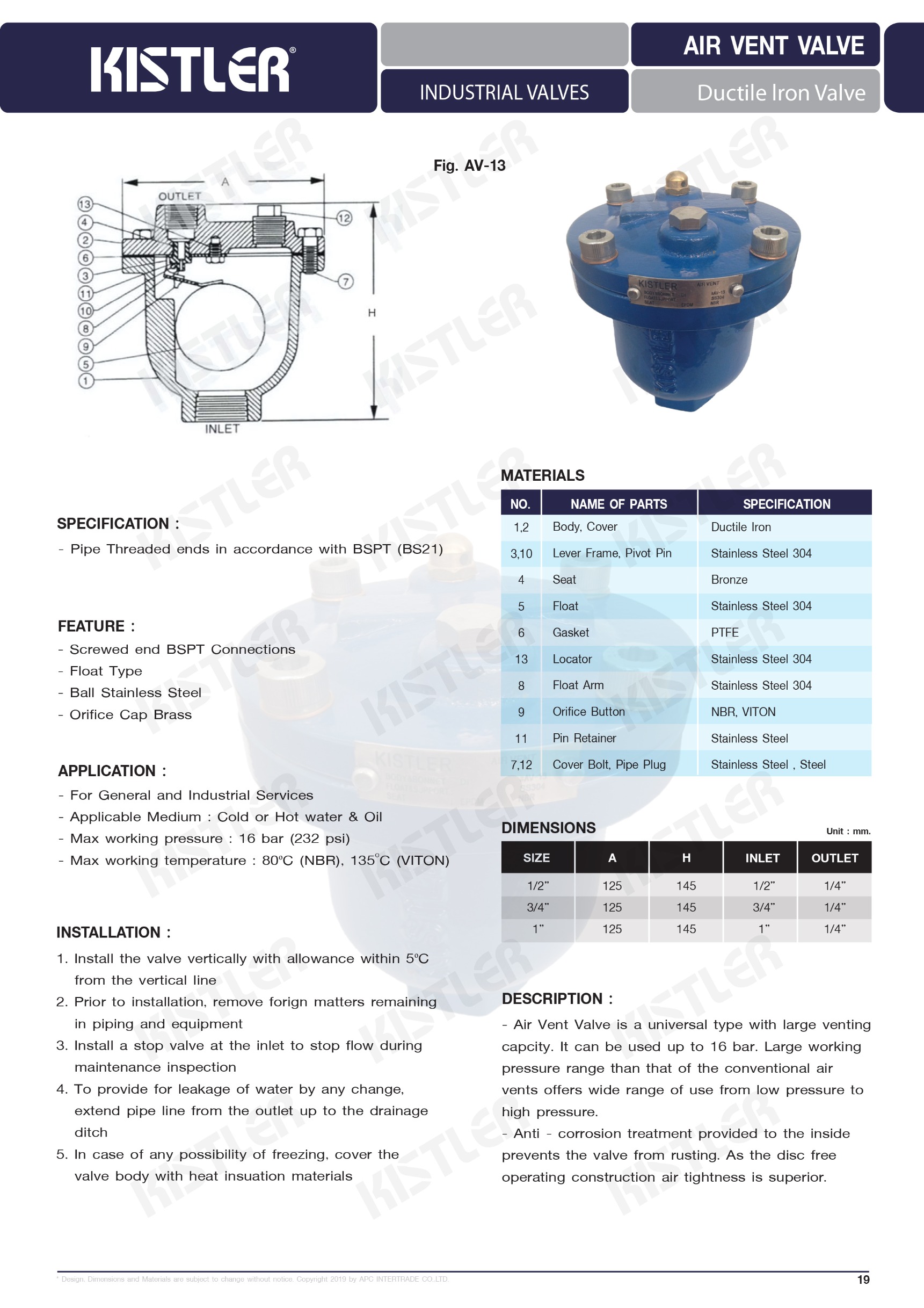Air Vent valve Kistler AV-13