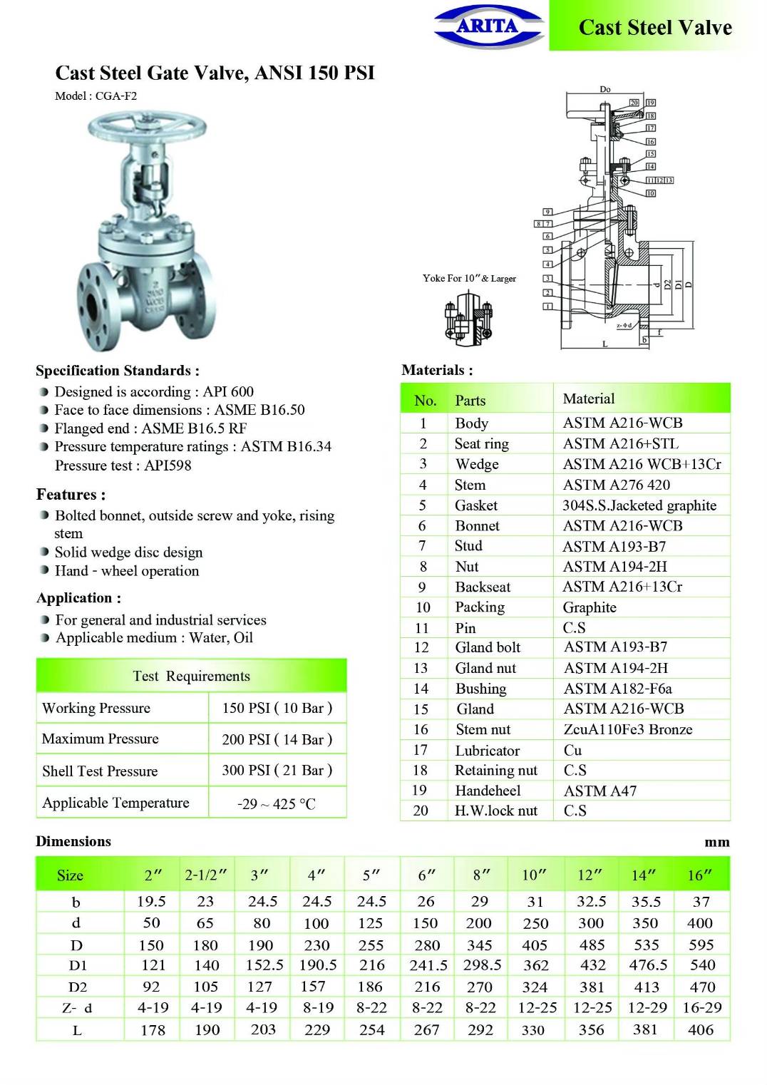 - Body material : ASTM A216-WCB , Cast steel