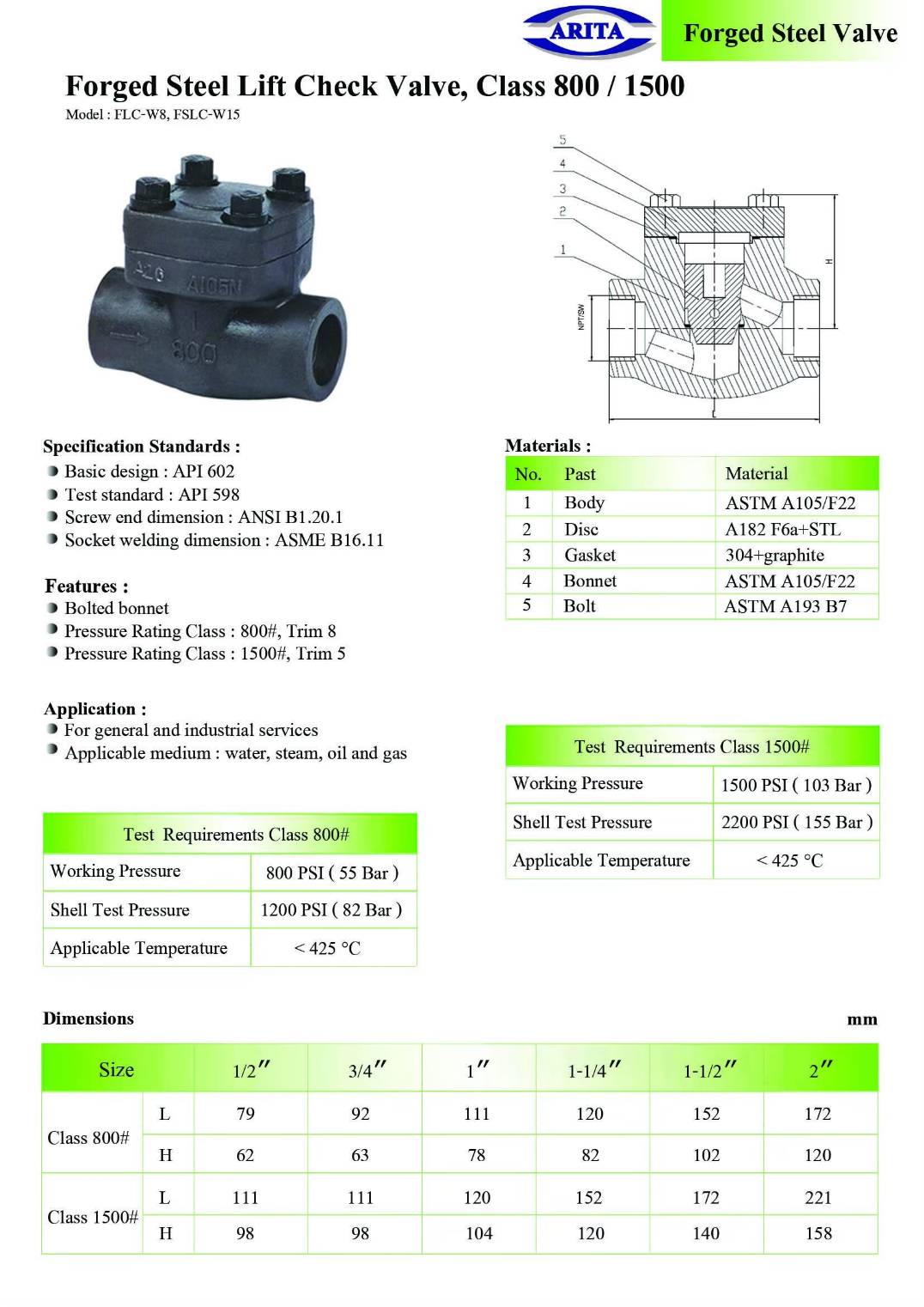 Lift Check valve Class800/1500 FLC-W8