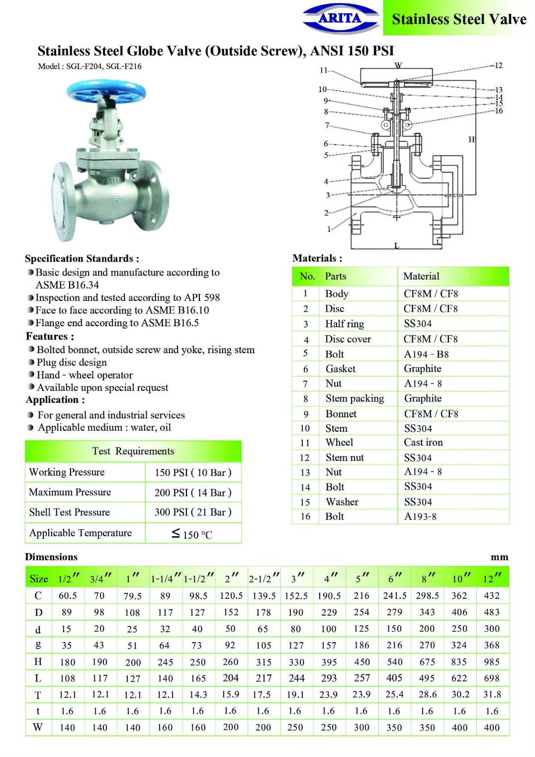 Globe valve สแตนเลส ANSI150P SGL-F204